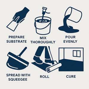 5) PRODUCT APPLICATION: Apply using brush, roller, or serrated squeegee followed by back-rolling. Maintain proper temperature and humidity during application and cure. If over-mixing or concrete conditions cause air entrapment, use an air-release roller before tack-off. Thinner applications self-level less effectively than thicker builds.